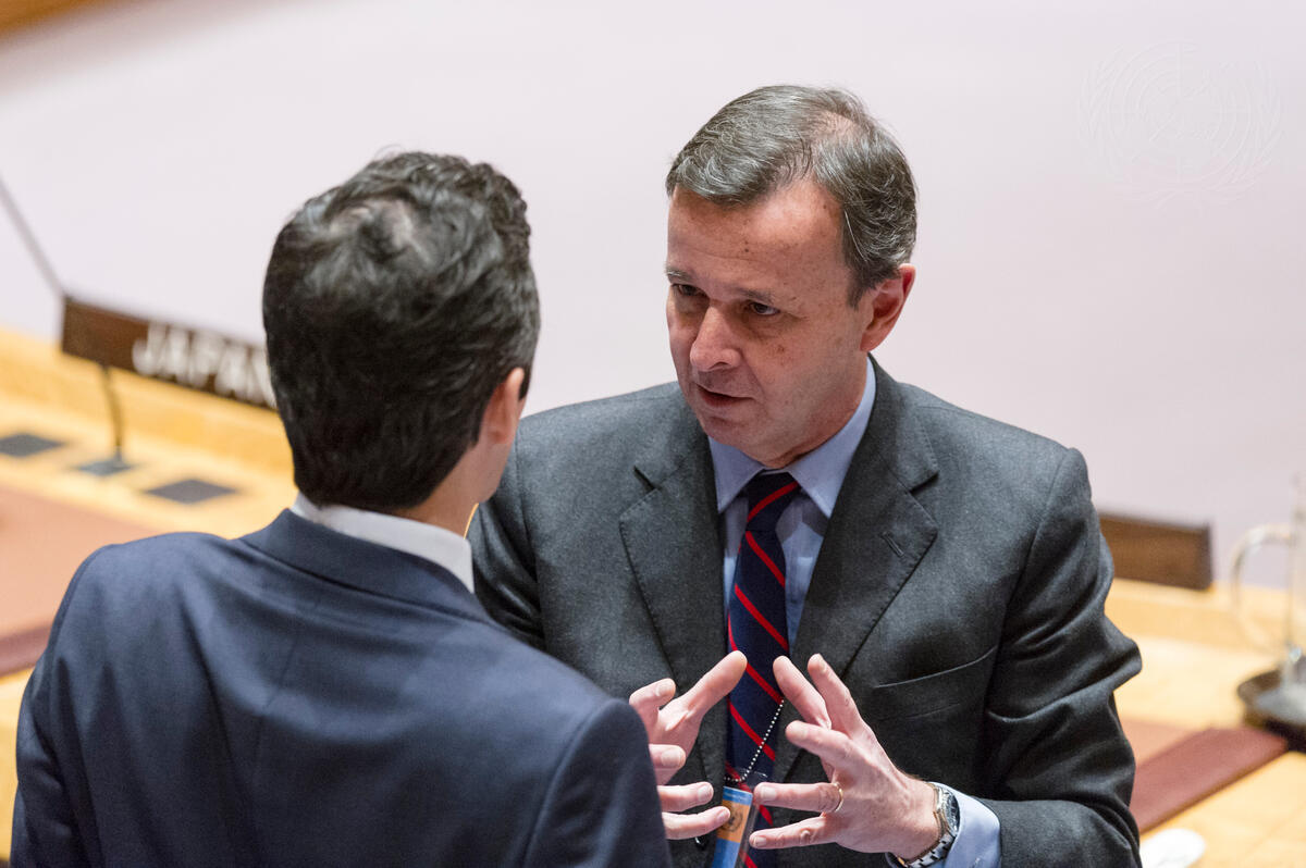 Sebastiano Cardi (right), Permanent Representative of Italy to the UN, at the Security Council meeting on the situation in Somalia.