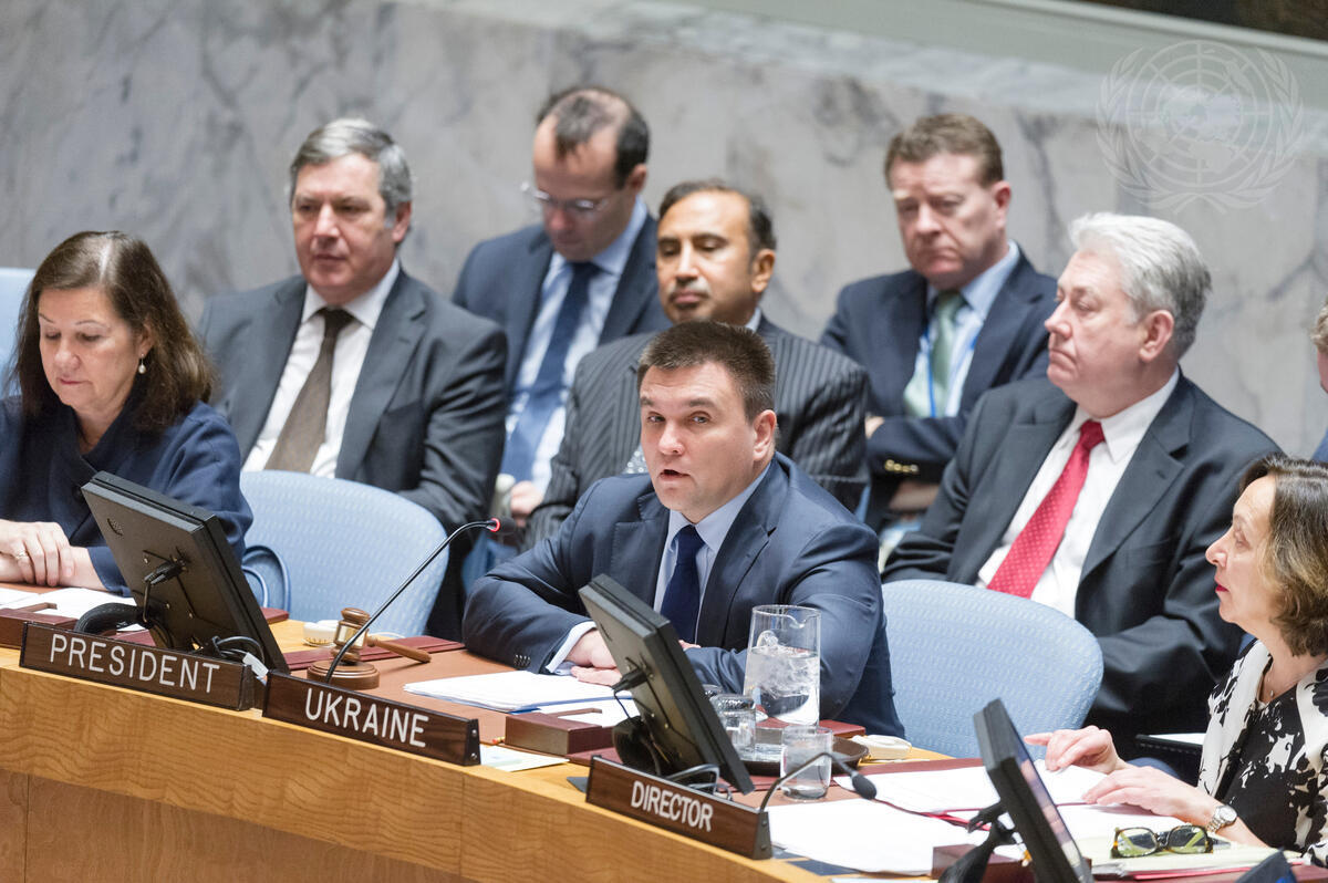 Pavlo Klimkin (front centre), Minister for Foreign Affairs of Ukraine and President of the Security Council for February, chairs the Council's open debate on the protection of critical infrastructure against terrorist attacks.