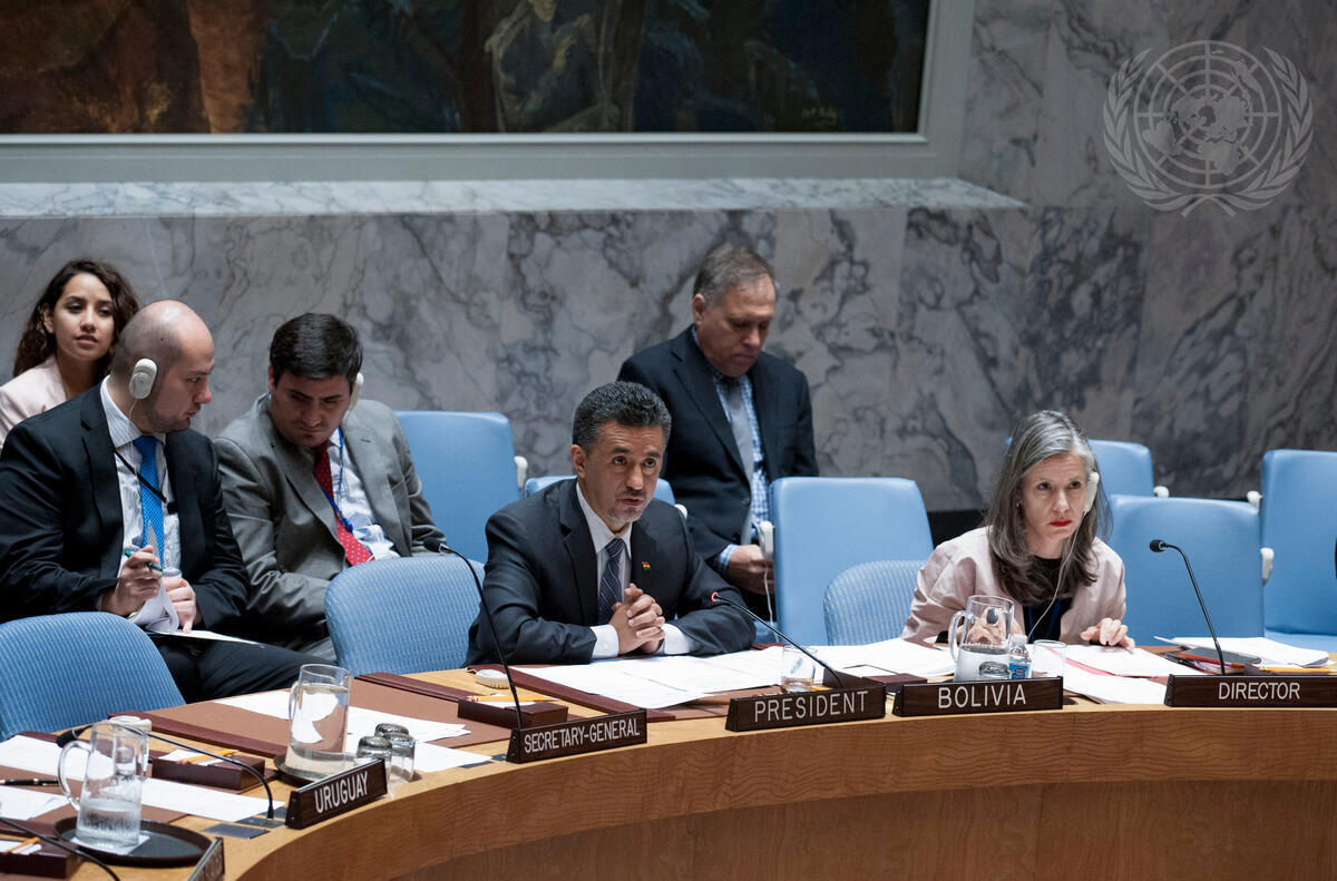 Sacha Sergio Llorentty Solíz (front left), Permanent Representative of the Plurinational State of Bolivia to the UN and President of the Security Council for June, chairs Council's meeting on the work of the International Criminal Tribunal for the Former Yugoslavia (ICTY) and the International Residual Mechanism for Criminal Tribunals (MICT).