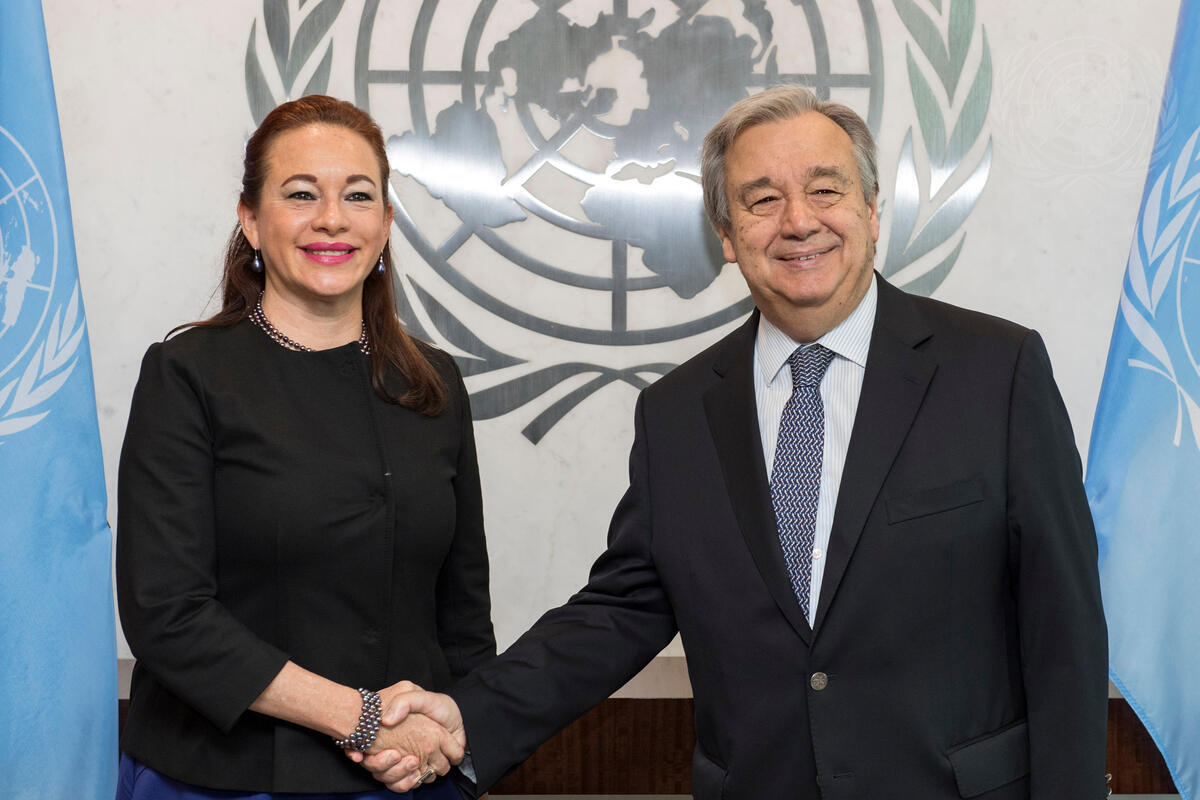 Secretary-General António Guterres meets with María Fernanda Espinosa, Minister for Foreign Affairs of Ecuador.