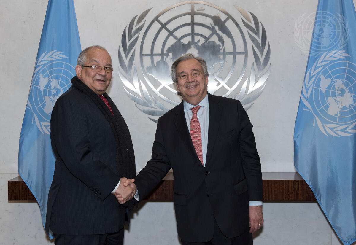 Secretary-General António Guterres (right) meets with Ahmad Allam-Mi, Secretary-General of the Economic Community of Central African States (ECCAS).