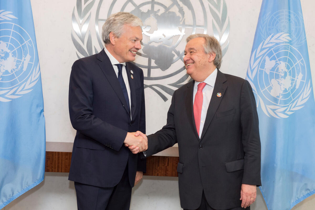 Secretary-General António Guterres (right) meets with Didier Reynders, Deputy Prime Minister and Minister for Foreign Affairs of Belgium.