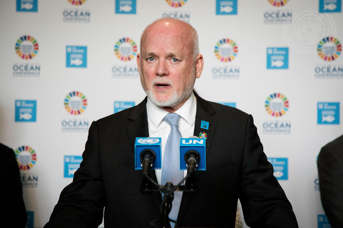 Peter Thomson, President of the seventy-first session of the General Assembly, speaks to journalists on the Ocean Conference.