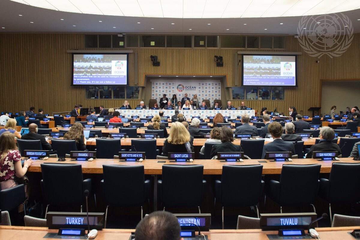 A view of the partnership dialogue on ""Increasing scientific knowledge, and developing research capacity and transfer of marine technology"". The dialogue took place as part of the 5-9 June UN Ocean Conference.