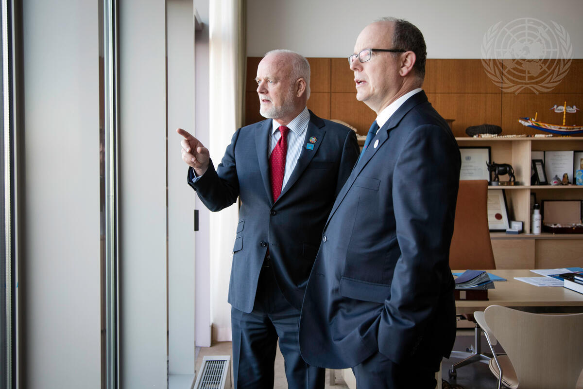 Peter Thomson (left), President of the seventy-first session of the General Assembly, meets with Prince Albert II of the Principality of Monaco.