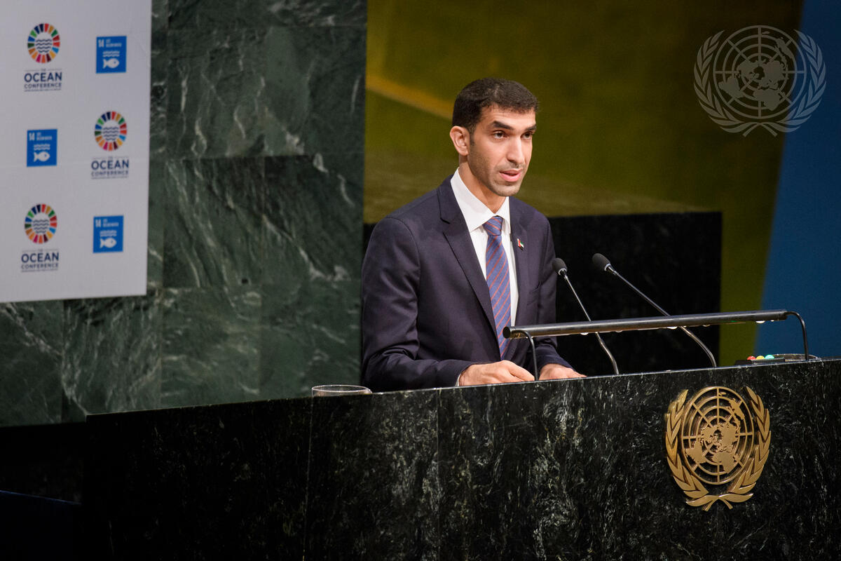 Thani Ahmed Al Zeyoudi, Minister for Climate Change and Environment of the United Arab Emirates, addresses the Ocean Conference.