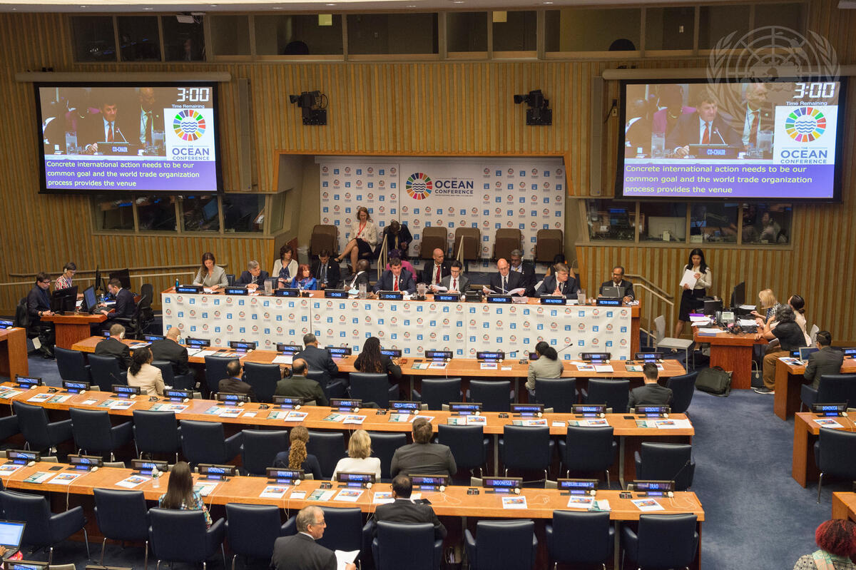 A view of the partnership dialogue on ""Making fisheries sustainable"". The dialogue took place as part of the 5-9 June UN Ocean Conference.