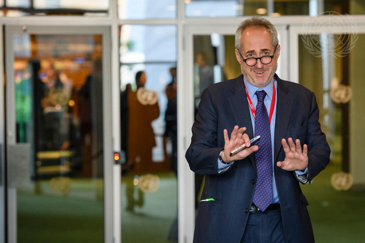 Stéphane Dujarric, Spokesperson for the Secretary-General, leaving the Assembly Hall following the meeting.