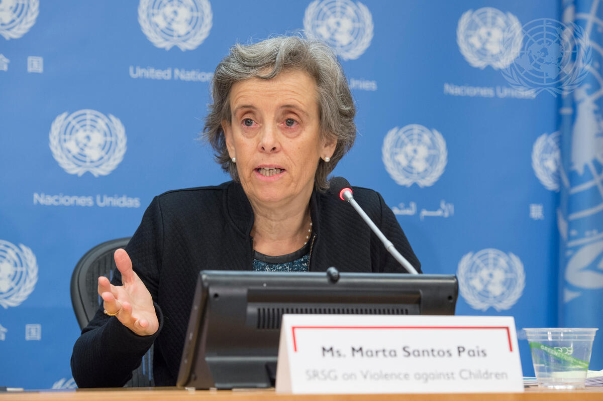 Marta Santos Pais, Special Representative of the Secretary-General on Violence against Children, briefs journalists on key factors ending childhood around the world and how best to keep childhood intact.