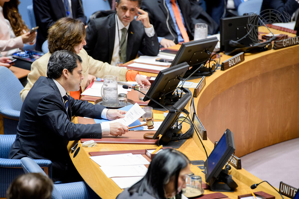 Luis Bermúdez, Deputy Permanent Representative of Uruguay to the UN and President of the Security Council for the month of May, chairs the Council's meeting on the situation in South Sudan.