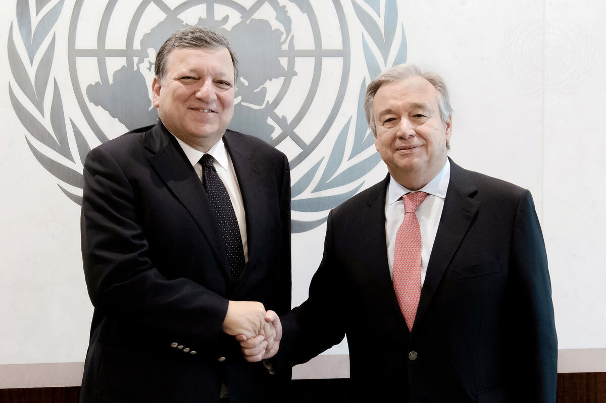 Secretary-General António Guterres (right) meets with José Manuel Durão Barroso, President of the European Commission.