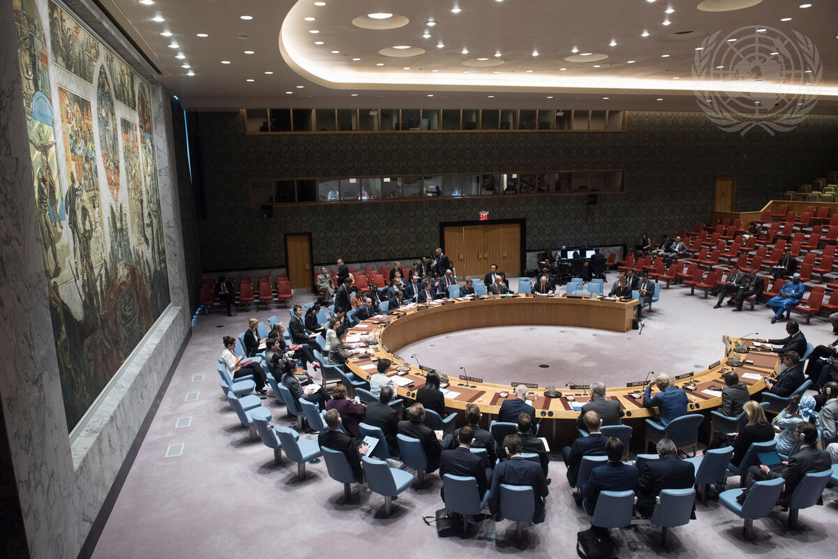 A wide view of the Security Council meeting on the situation in Mali.