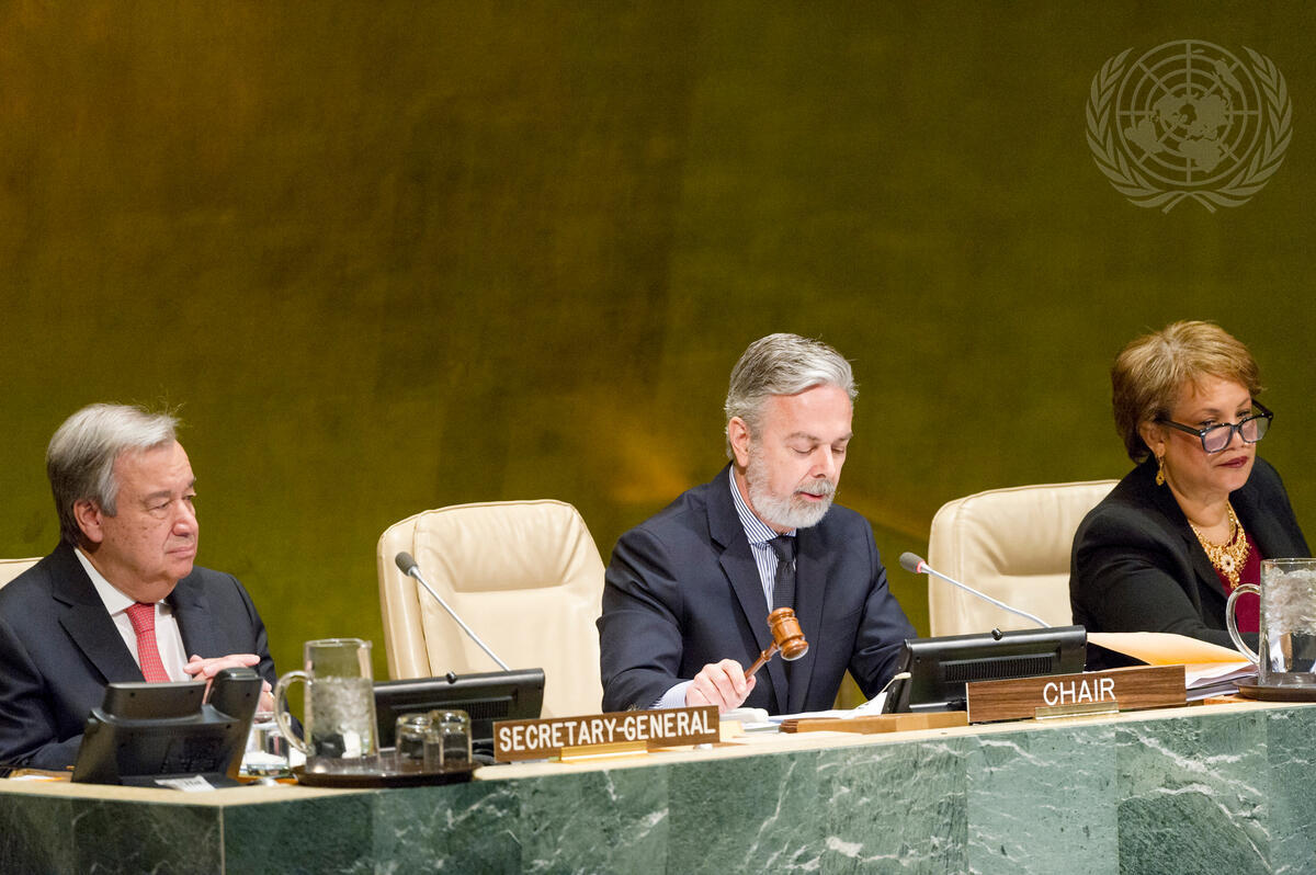 Antonio de Aguiar Patriota (centre), Chair of the Commission on the Status of Women (CSW), chairs the opening meeting of the Commission’s sixty-first session. He is flanked by Secretary-General António Guterres (left) and Catherine Pollard, Under-Secretary-General for General Assembly and Conference Management.