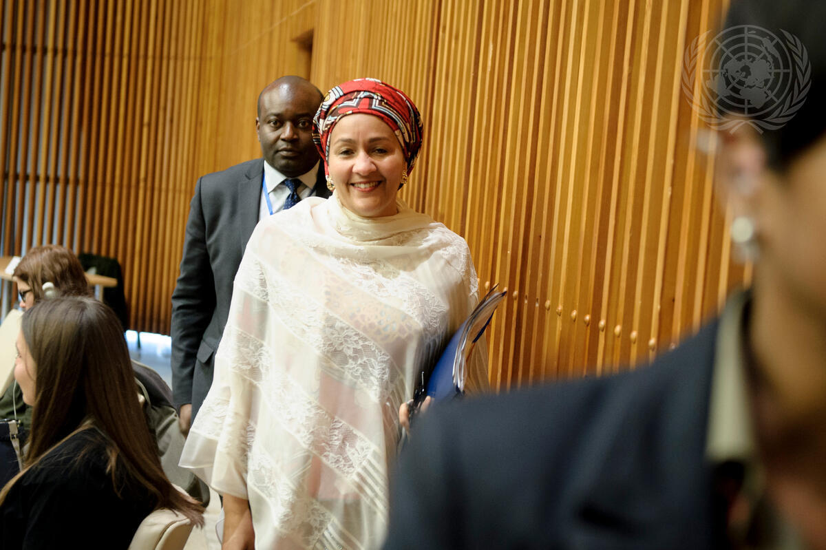 Deputy Secretary-General Amina Mohammed arrives to take part in an interactive discussion on “Public Policies for Happiness”, marking the International Day of Happiness (20 March). The event was co-organized by the Permanent Missions of Australia, Bhutan, Denmark, Ecuador, Rwanda, Slovenia, Thailand and the United Arab Emirates, in collaboration with the Department for Public Information (DPI) and the United Nations Sustainable Development Solutions Network (UN-SDSN).