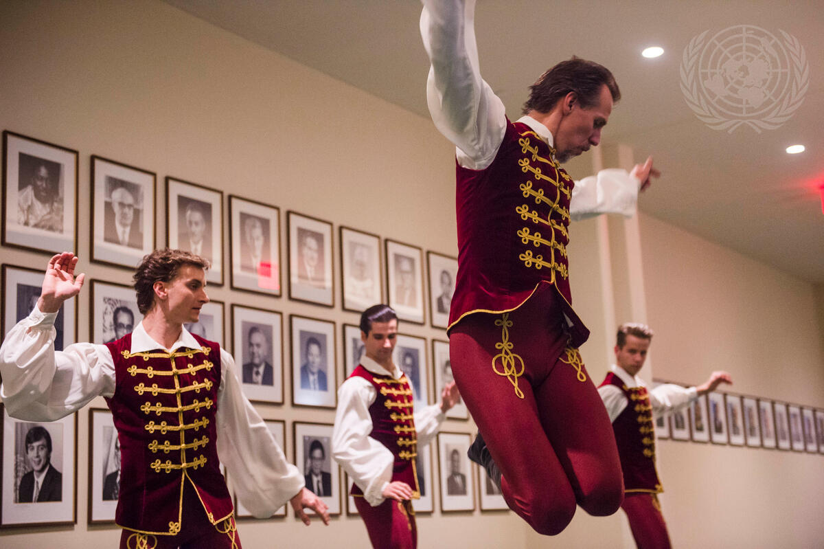 Hungarian folk dancers warm up prior to the United Nations Day Concert ""Freedom First"", performed by the Hungarian State Opera and other notable artists, and sponsored by the Permanent Mission of Hungary to the United Nations.