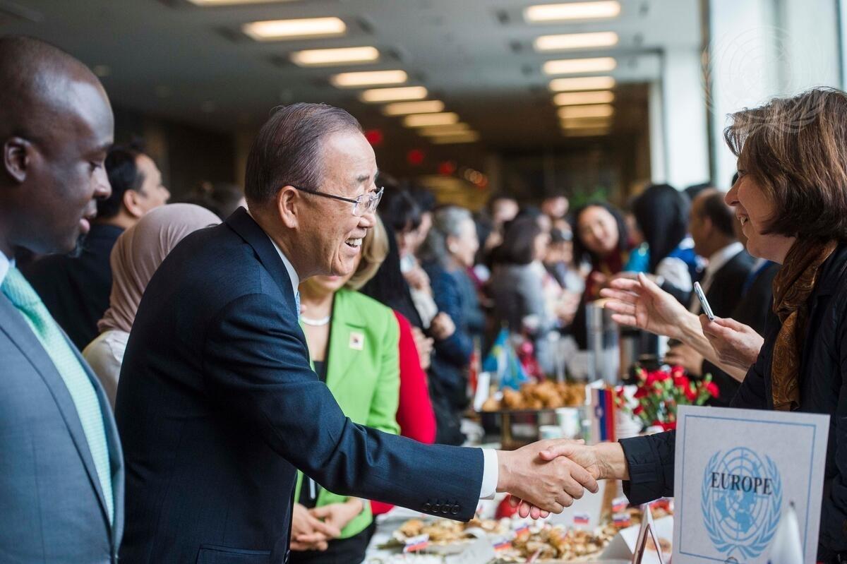 Secretary-General Ban Ki-moon (second from left) visits the International Food Festival and Club Fair, during celebrations on UN Staff Day in New York.