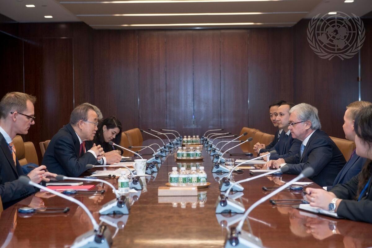 Secretary-General Ban Ki-moon (left centre) meets with Rashid Alimov, Secretary-General of the Shanghai Cooperation Organization.