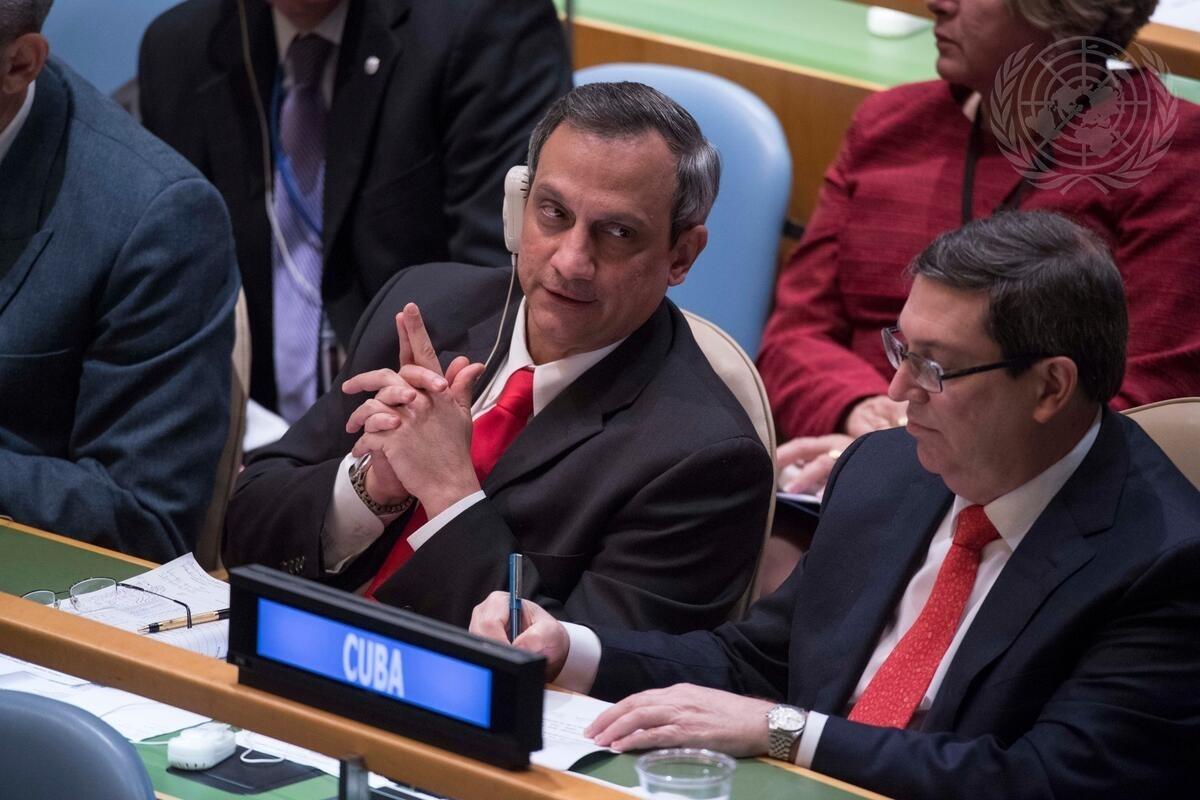 Bruno Rodríguez Parrilla (right), Minister for Foreign Affairs of Cuba, and Rodolfo Reyes Rodríguez, Permanent Representative of Cuba to the United Nations, during the General Assembly vote to end the economic, commercial and financial embargo imposed by the United States of America agains Cuba [item39].