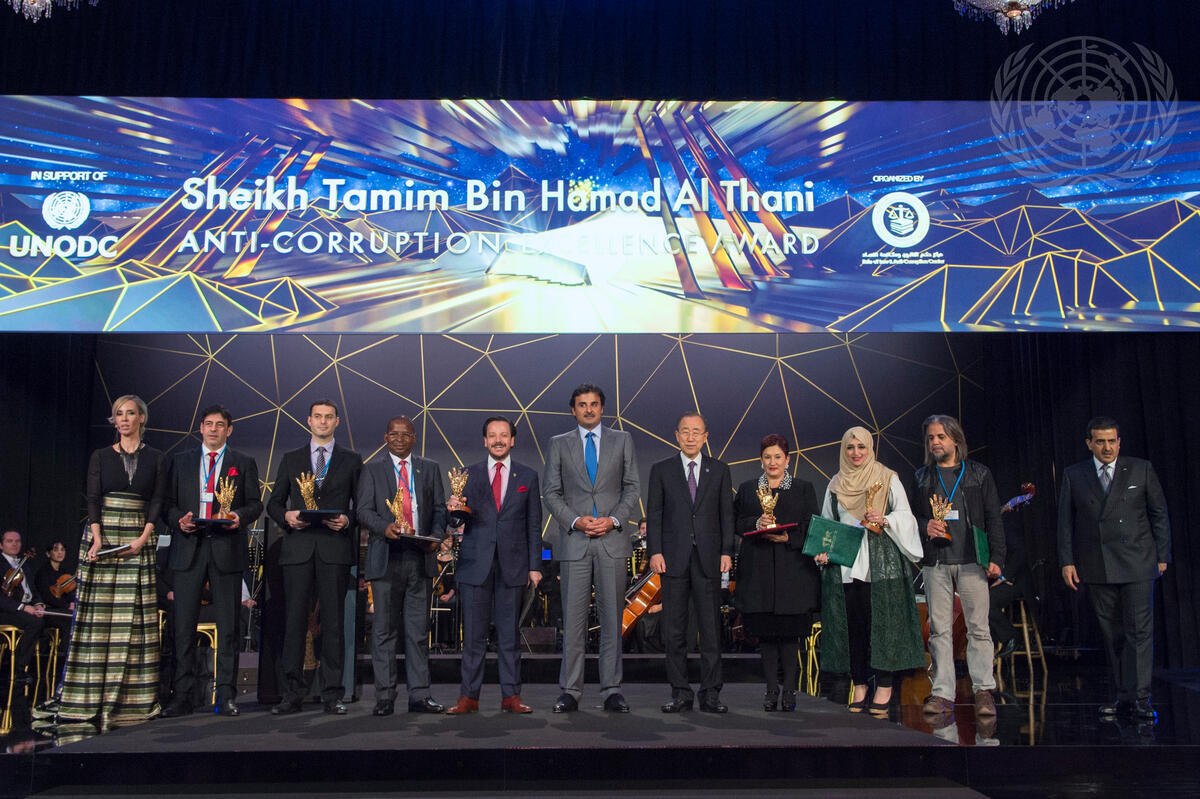 Marking International Anti-Corruption Day (9 December), the inaugural Sheikh Tamim bin Hamad Al Thani Anti-Corruption Excellence Award was presented in Vienna to recognize significant global efforts to combat corruption. At a ceremony attended by Sheikh Tamim bin Hamad Al-Thani, Amir of the State of Qatar; Secretary-General Ban Ki-moon; and Yury Fedotov, Executive Director of UNODC, awards were presented in four categories: innovation, research, youth creativity and lifetime achievement. The Award was established by the Rule of Law and Anti-corruption Center (ROLACC) based in Doha, Qatar.