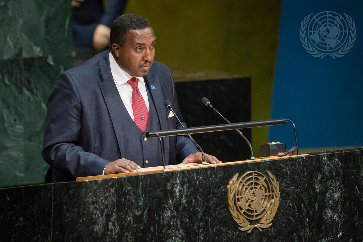 Awale Ali Kullane (Somalia), Rapporteur of the Special Political and Decolonization Committee (Fourth Committee) of the General Assembly, presents the Committee’s reports to the Assembly.