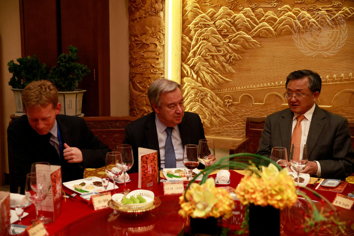 Secretary-General António Guterres (centre) meets with Liu Zhenmin (right), Vice Minister for Foreign Affairs of the People’s Republic of China.