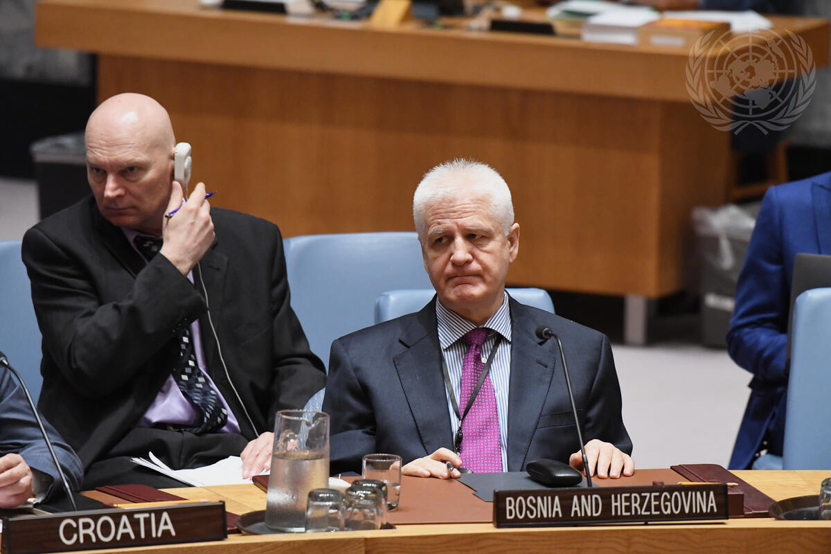 Miloš Vukašinovic, Permanent Representative of Bosnia and Herzegovina to the UN, during the Security Council meeting on the situation in his country.