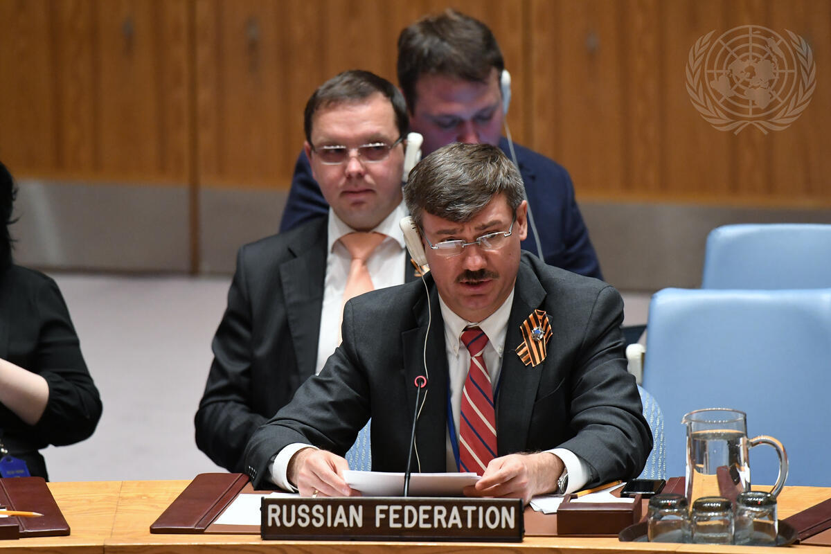 Petr V. Iliichev, First Deputy Permanent Representative of the Russian Federation to the UN, addresses the Security Council meeting on cooperation between the United Nations and the European Union in maintaining international peace and security.