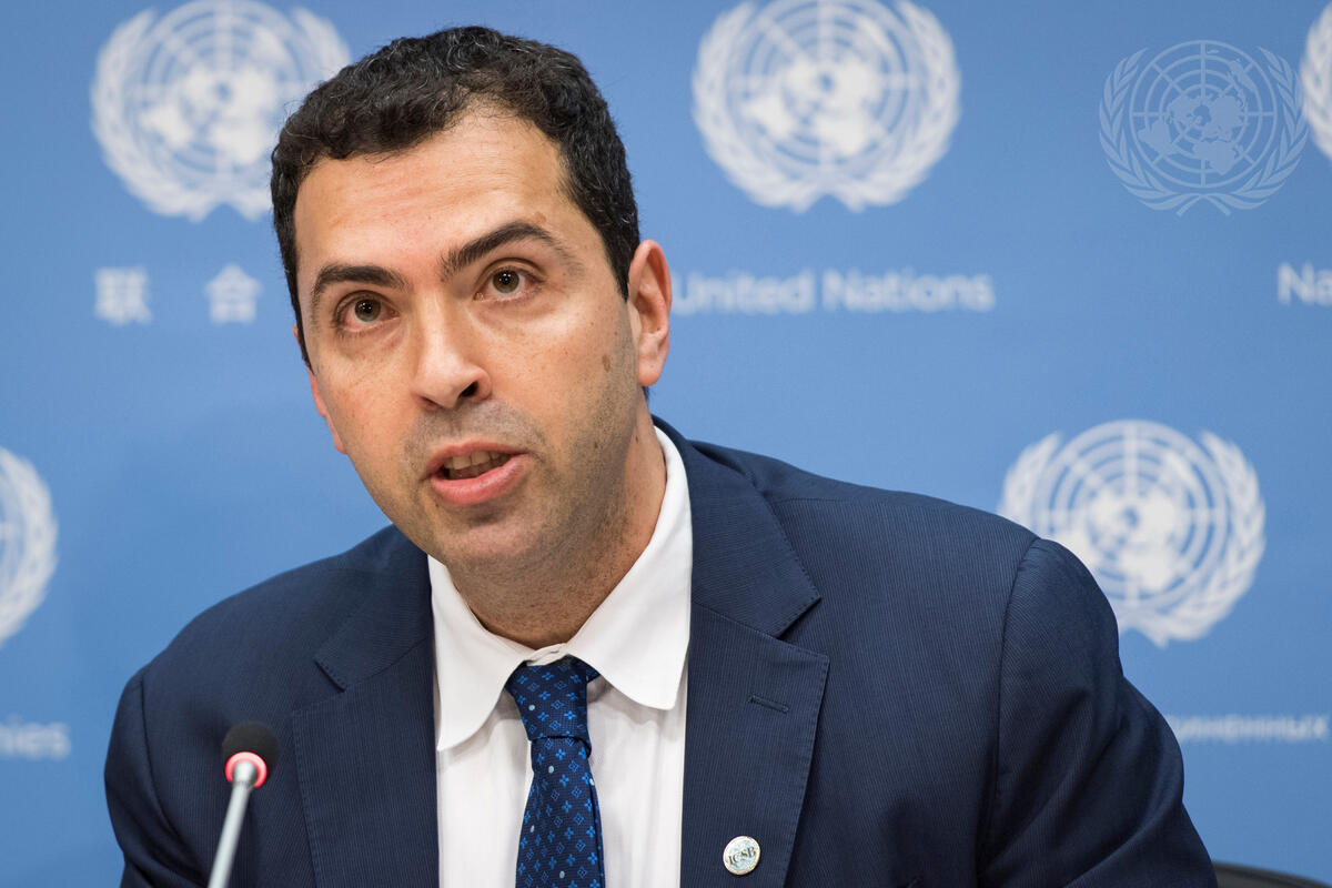 Ayman El Tarabishy, Executive Director of the International Council for Small Business (ICSB), addresses a press conference on new initiatives to empower micro, small and medium-sized enterprises (MSMEs) as engines of job creation, innovation and sustainable growth. Also briefing reporters with him were: Mariano Meyer, National Secretary for Entrepreneurs and Small and Medium Enterprises of Argentina; Martín García Moritán, Permanent Representative of Argentina to the UN; and Winslow Sargeant, Senior Vice President of ICSB and former Chief Counsel for Advocacy at the United States Small Business Administration.