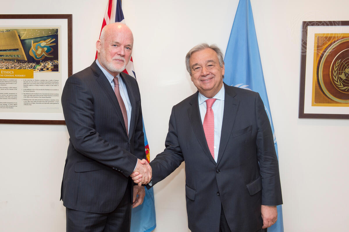 Peter Thomson (left), President of the seventy-first session of the General Assembly, meets with António Guterres, ninth Secretary-General of the United Nations, on the latter’s first day at work.