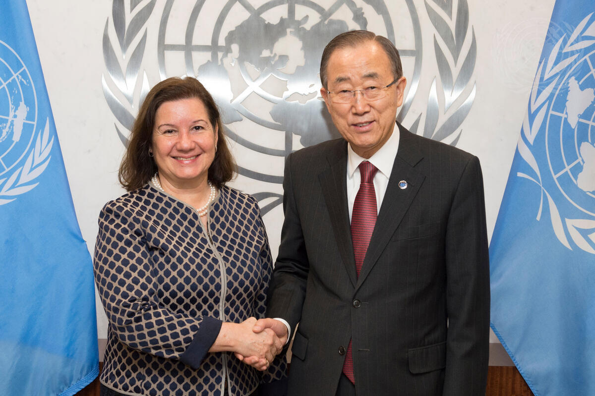 Secretary-General Ban Ki-moon (right) meets with Maria Luiza Ribeiro Viotti, Chef de Cabinet to Secretary-General-designate António Guterres.