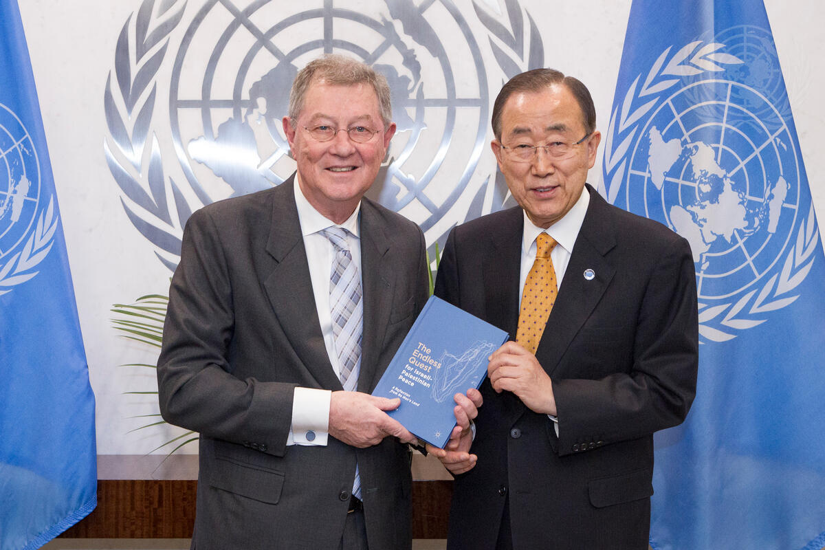 Secretary-General Ban Ki-moon (right) meets with Robert Serry, Former UN Special Coordinator for the Middle East Peace Process and author of the book, “The Endless Quest for Israeli-Palestinian Peace: A Reflection from No Man’s Land”.