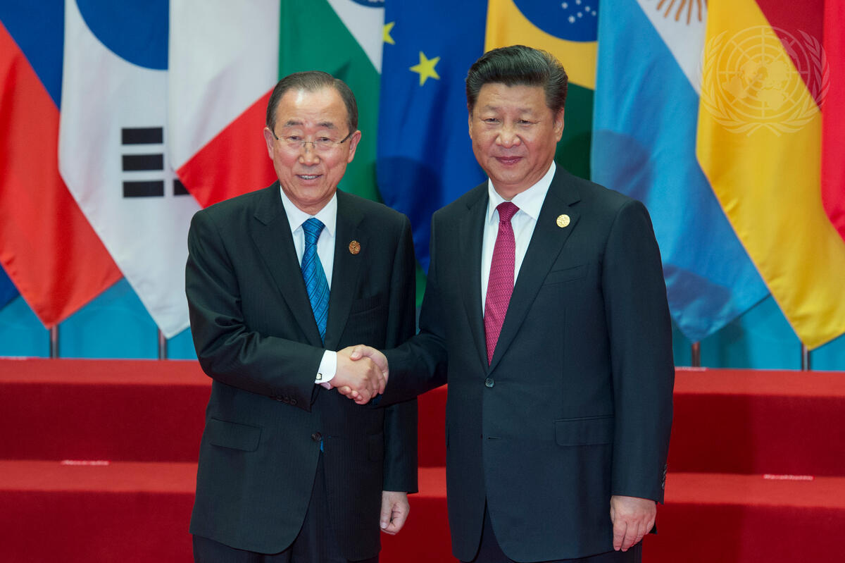 Secretary-General Ban Ki-moon (left) shakes hands with Xi Jinping, President of the People's Republic of China, during the opening ceremony for the 2016 Summit of the Group of 20 (G20) countries, hosted by the China in Hangzhou.