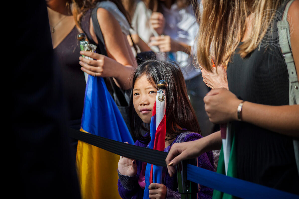 A young girl holding a Member State’s flag was among the participants at the annual Peace Bell Ceremony commemorating the International Day of Peace (21 September).