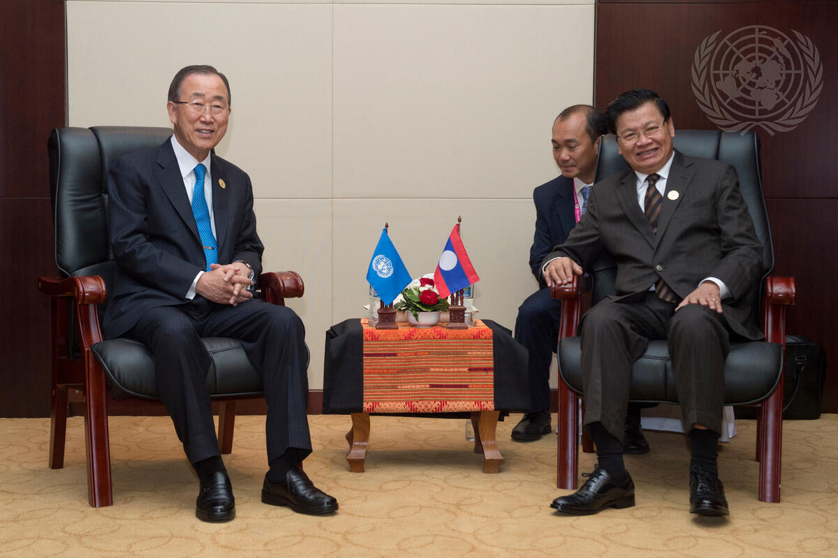 Secretary-General Ban Ki-moon (left) meets with Thongloun Sisoulith, Prime Minister of the Lao People’s Democratic Republic.