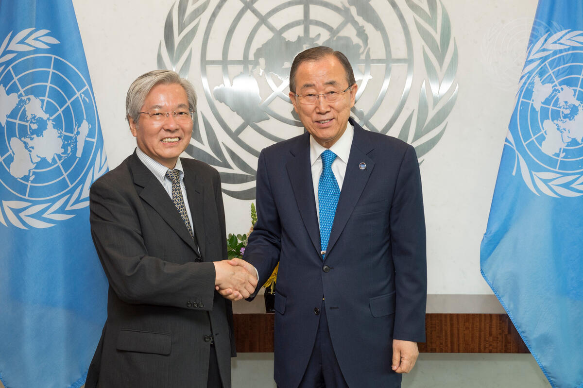 Secretary-General Ban Ki-moon (right) meets with Tadamichi Yamamoto, his Special Representative and Head of the United Nations Assistance Mission in Afghanistan (UNAMA).