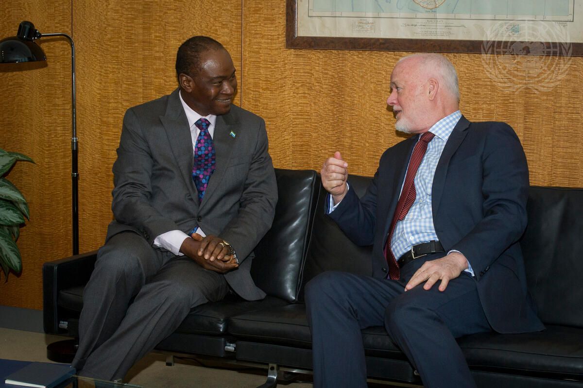 Peter Thomson (right), President of the seventy-first session of the General Assembly, meets with Samura M. W. Kamara, Minister for Foreign Affairs and International Cooperation of the Republic of Sierra Leone.