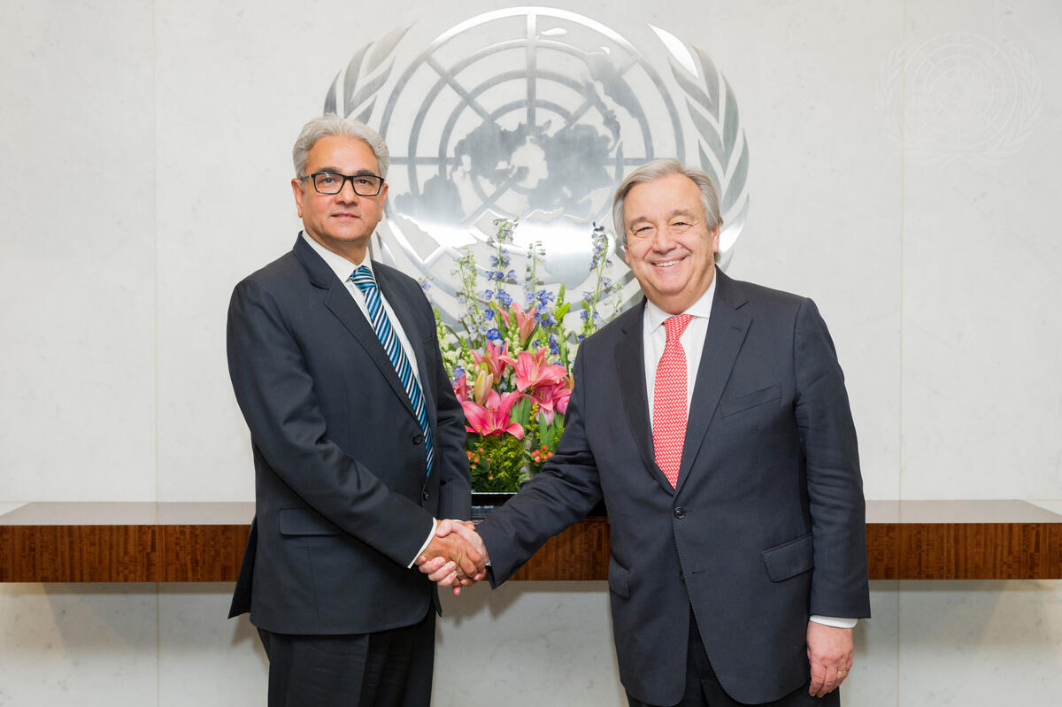 Secretary-General António Guterres (right) meets with Shashi Sharma, Chairman of the United Nations Board of Auditors.