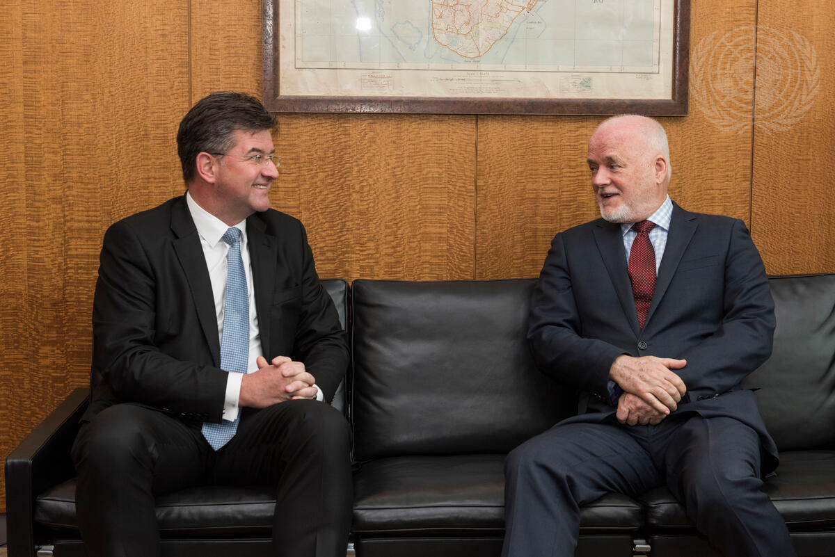 Peter Thomson (right), President of the General Assembly's seventy-first session, meets with Miroslav Lajcák, Minister for Foreign Affairs of the Slovak Republic.