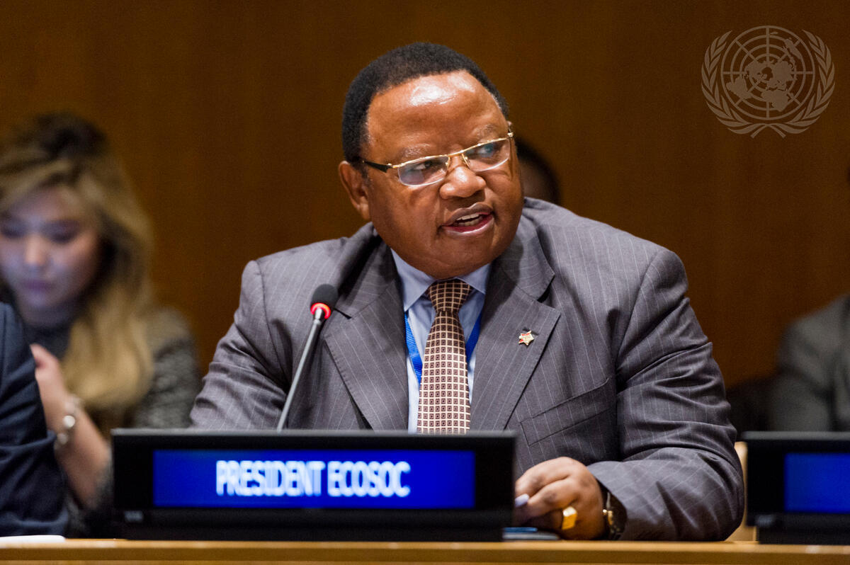 Frederick Musiiwa Makamure Shava, Permanent Representative of the Republic of Zimbabwe to the UN and President of the Economic and Social Council (ECOSOC), addresses a brainstorming session on responsible governance on disarmament and non-proliferation for progress and sustainable development. The event was organized by the Permanent Missions of Belarus, Kazakhstan and Suriname with the UN Development Programme (UNDP).