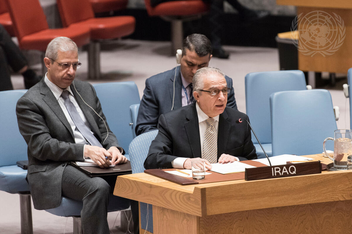 Mohamed Ali Alhakim, Permanent Representative of Iraq to the UN, addresses the Security Council meeting on the situation concerning Iraq.