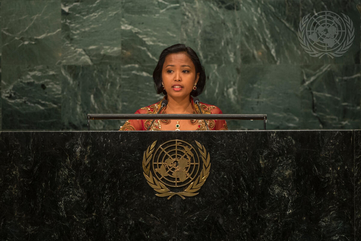 Eni Lestari Andayani Adi (Indonesia), Chairperson of the International Migrants Alliance (IMA), addresses the opening segment of the United Nations high-level summit on large movements of refugees and migrants.