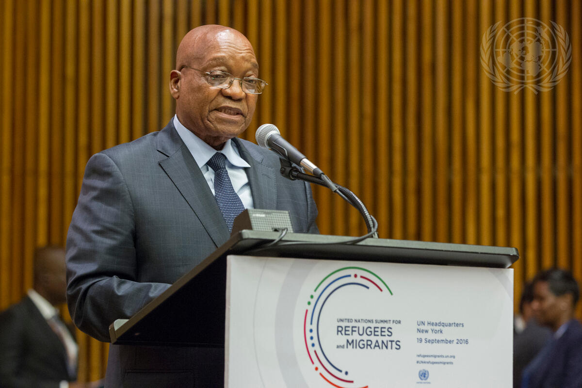 Jacob Zuma, President of the Republic of South Africa, addresses the United Nations high-level summit on large movements of refugees and migrants.