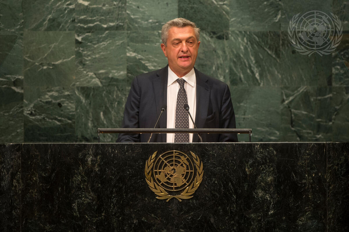 Filippo Grandi, UN High Commissioner for Refugees, addresses the opening segment of the United Nations high-level summit on large movements of refugees and migrants.