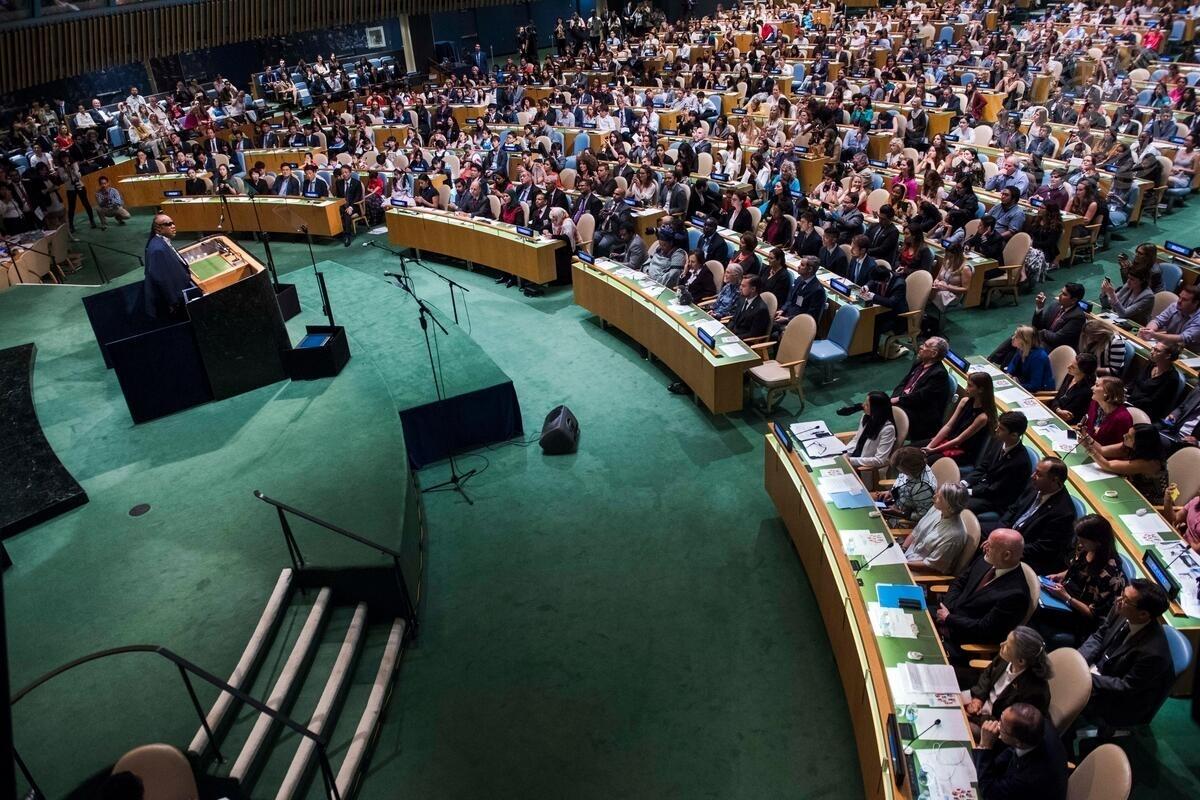 UN Messenger of Peace Stevie Wonder addresses a special event entitled ""Student Observance on the occasion of the International Day of Peace (21 September)”. The theme of the event was “The Sustainable Development Goals: Building Blocks for Peace”.