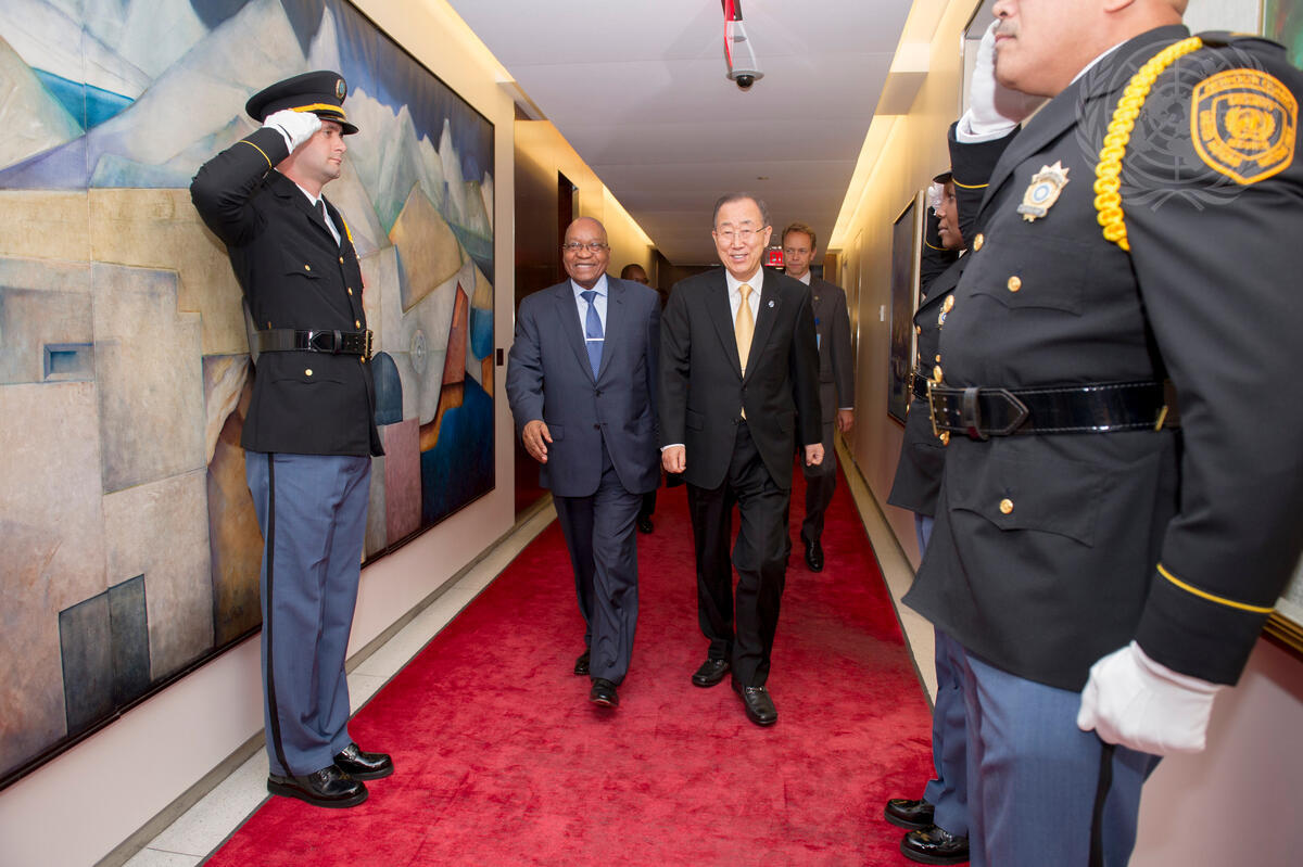 Secretary-General Ban Ki-moon (centre right) meets with Jacob Zuma (centre left), President of the Republic of South Africa.