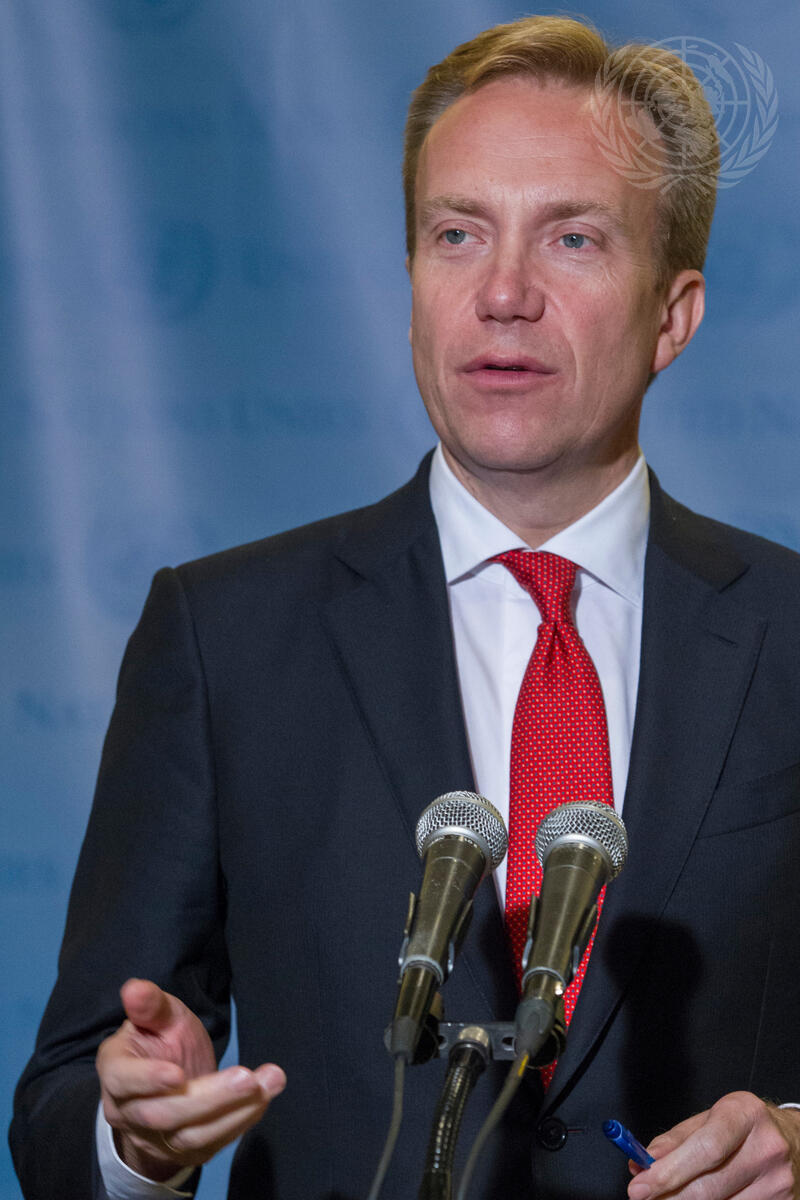 Børge Brende, Minister for Foreign Affairs of Norway, briefs the press following a meeting of the Ad Hoc Liaison Committee (AHLC).