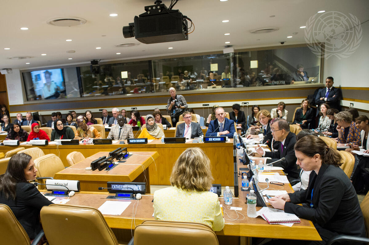 Secretary-General Ban Ki-moon (right center) addresses the United Nations high-level civil society event on the sidelines of the summit for refugees and migrants.