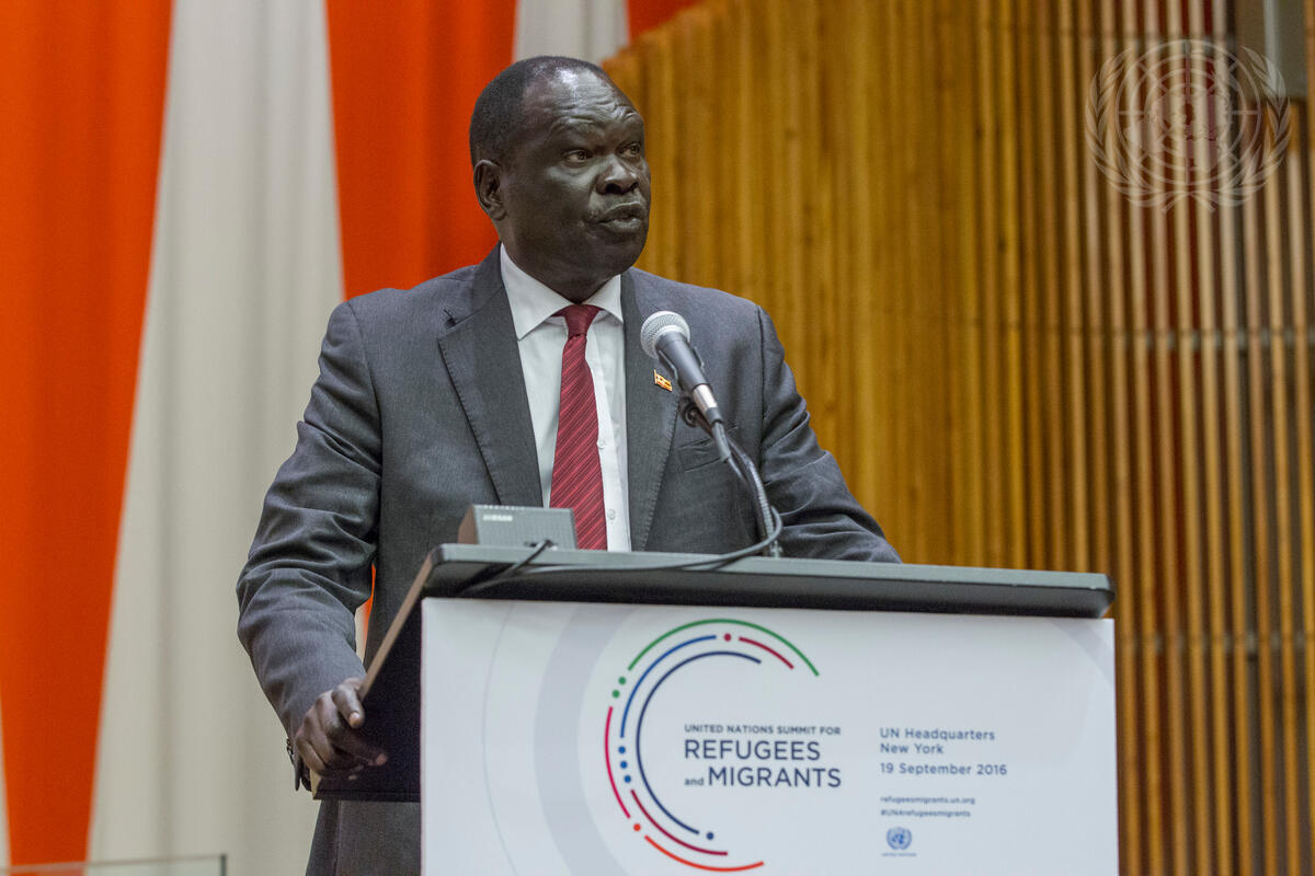 The representative of Uganda addresses the United Nations high-level summit on large movements of refugees and migrants.