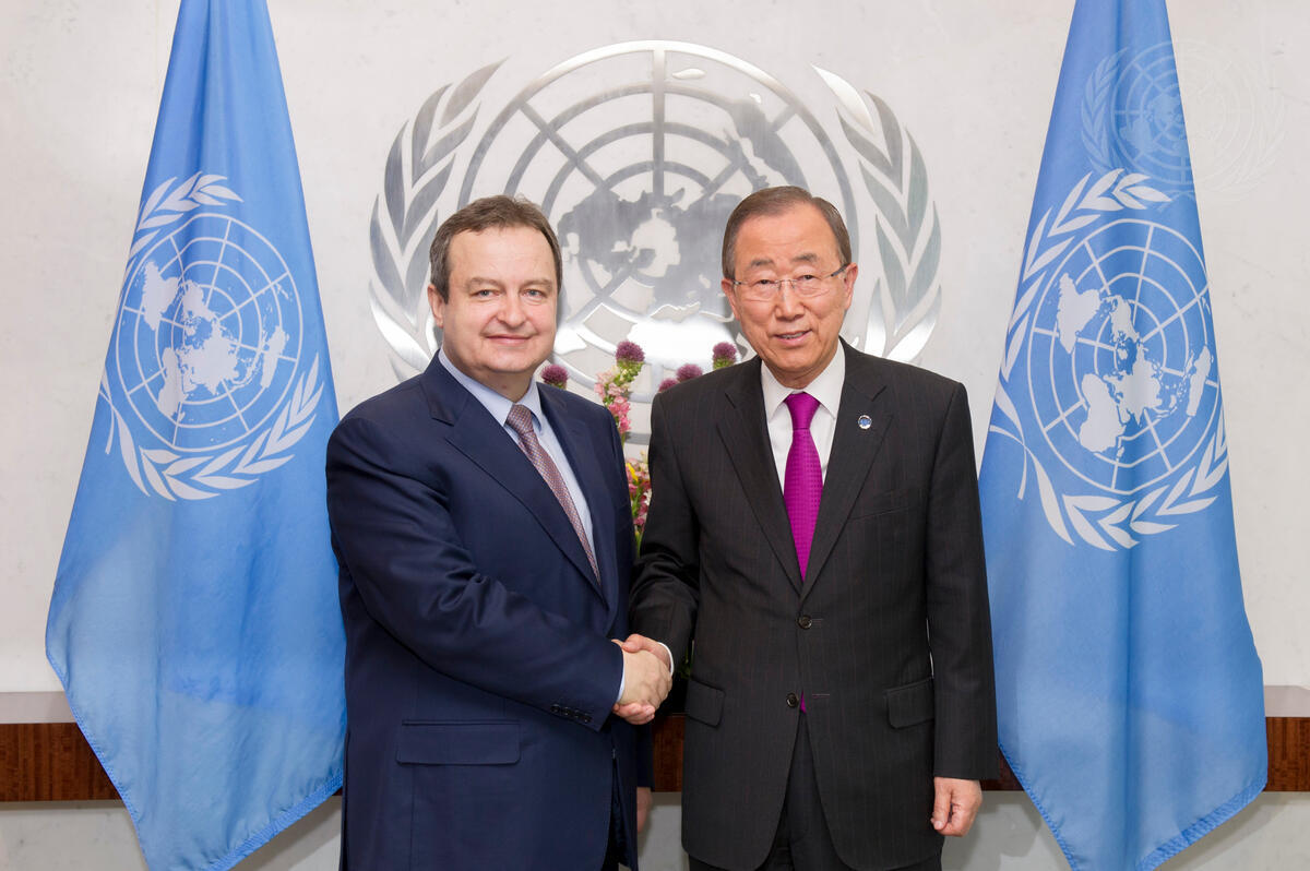 Secretary-General Ban Ki-moon (right) meets with Ivica Dacic, First Deputy Prime Minister and Minister for Foreign Affairs of the Republic of Serbia.
