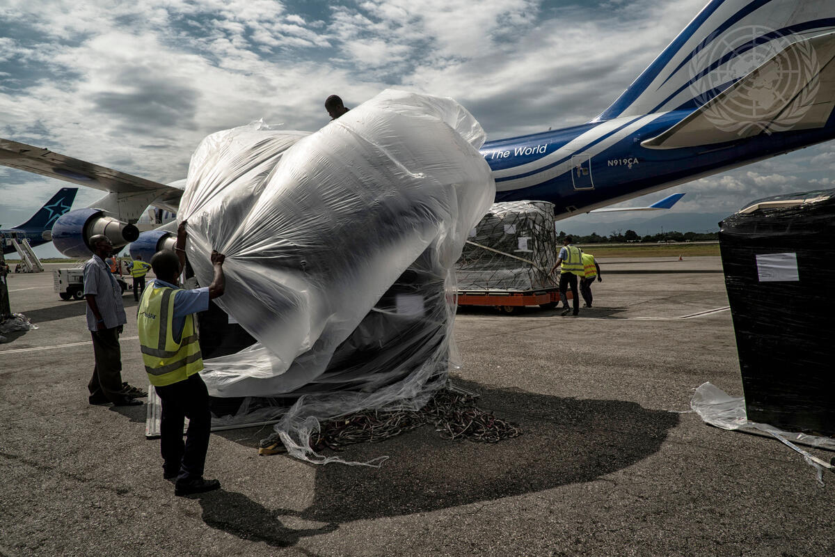 The first delivery of electoral materials arrives in Port-au-Prince, Haiti. More than 30,000 voting booths were sent to be used in elections slated for October 9, 2016.